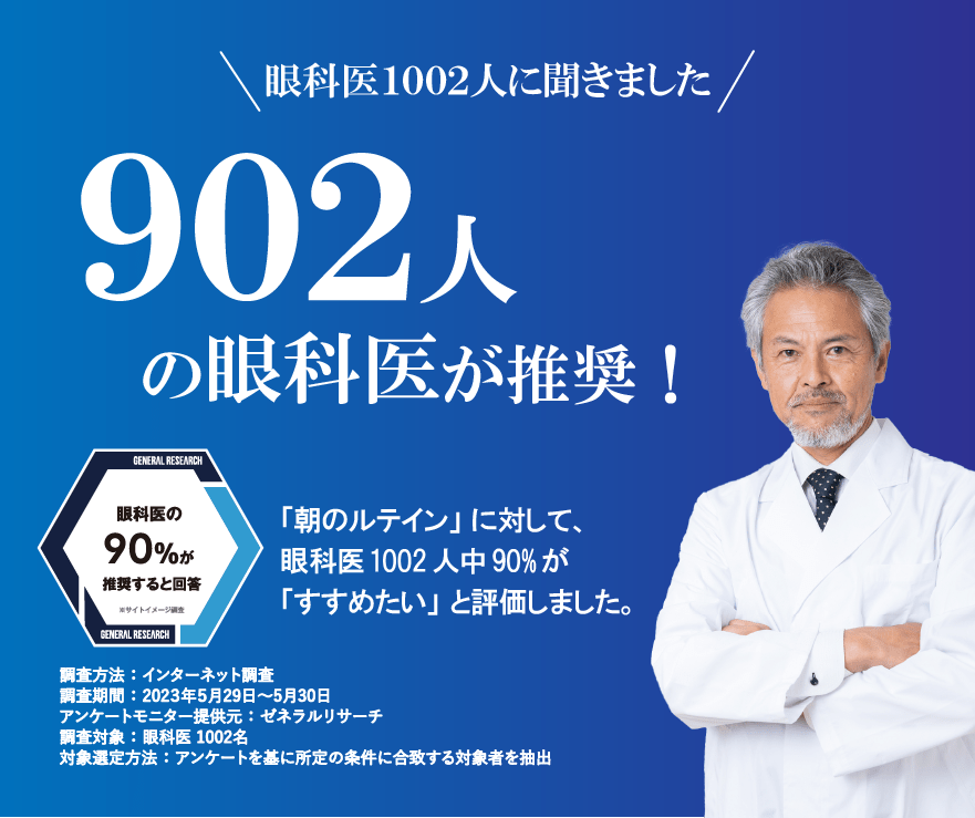 朝のルテインは「推奨する目のサプリ」として902人の眼科医の方から推奨を受けました。