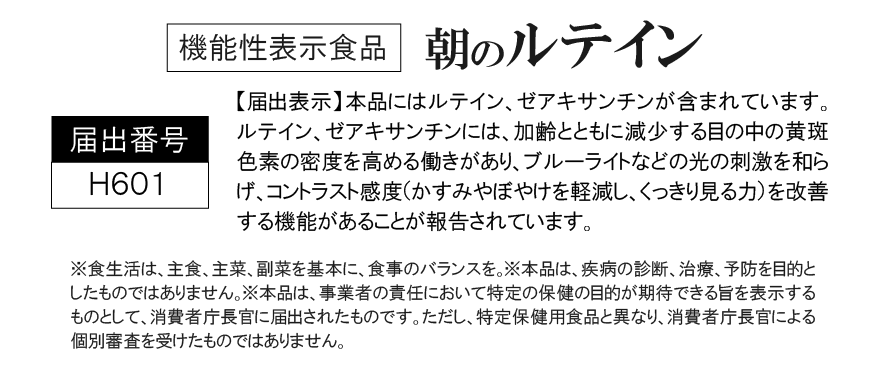 一般社団法人 健康長寿が販売する『朝のルテイン』は、機能性表示食品になりました。
