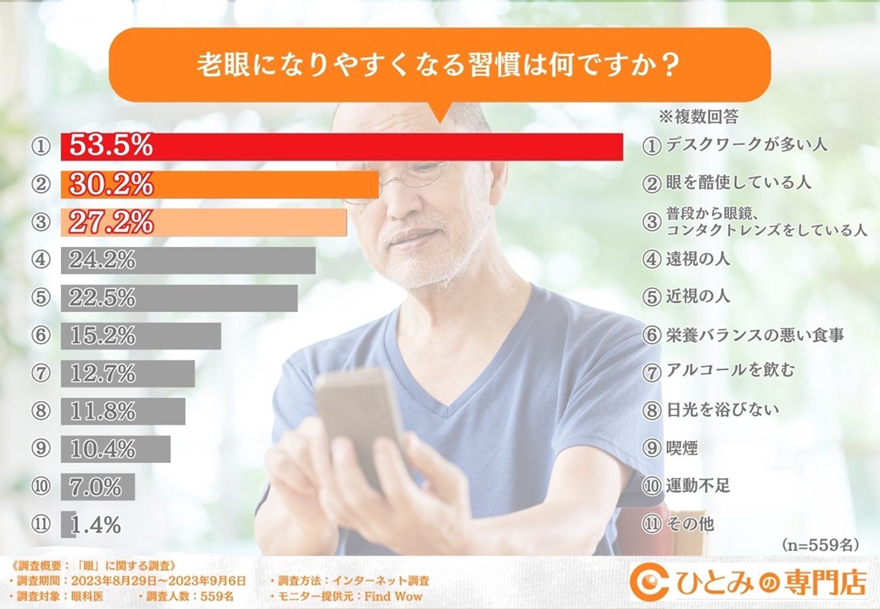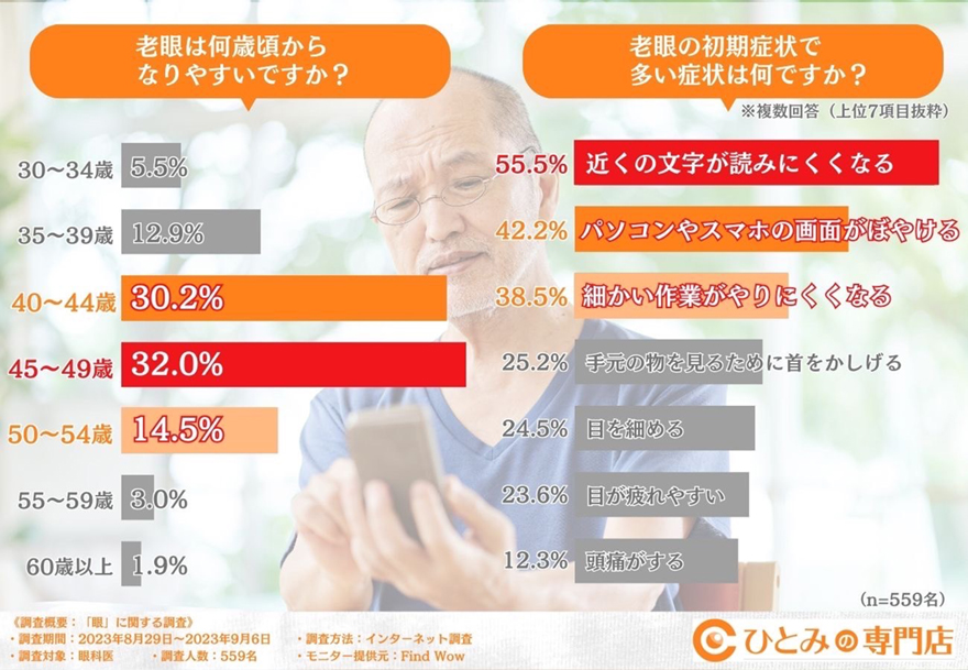 そこで今回、ひとみの専門店を運営する一般社団法人健康長寿は、全国の眼科医を対象に「老眼」に関する調査を実施しました。
